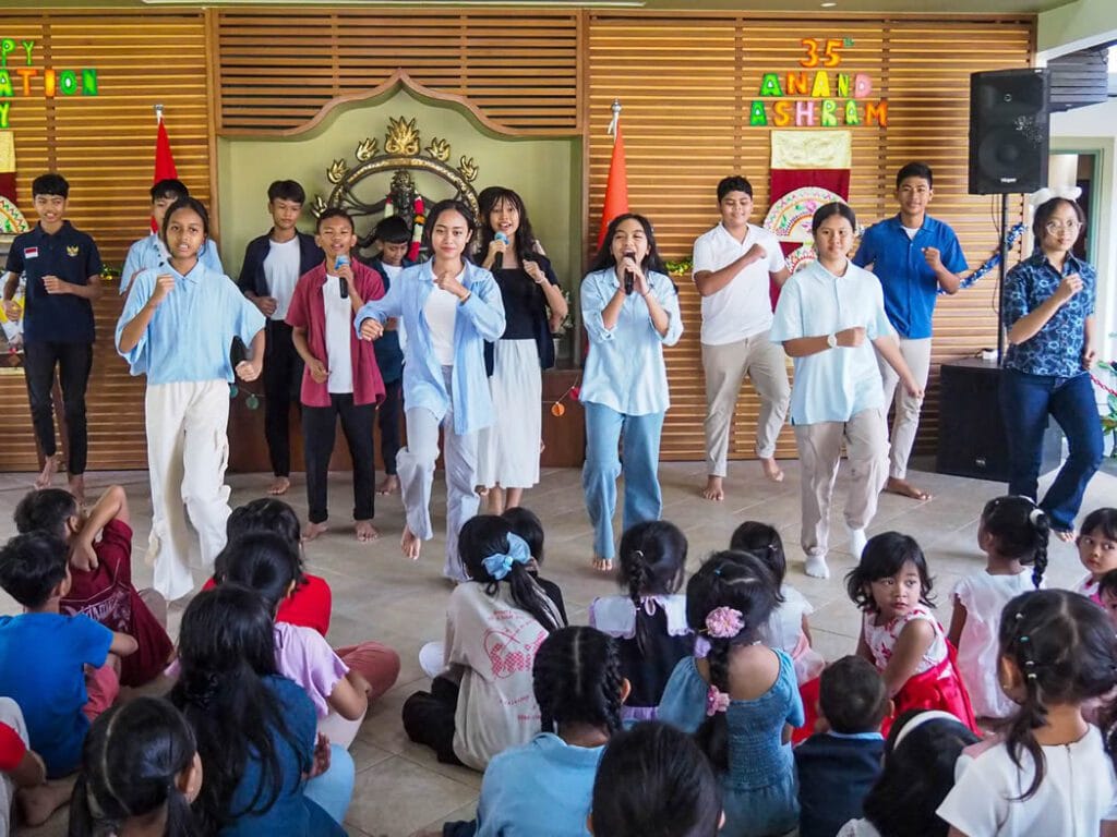 Setiap kelas dari PAUD – Kelas 6 SD memeriahkan perayaan dengan menyanyikan lagu-lagu dengan nuansa human values yang ceria dan menyegarkan jiwa. Siswa SMP kelas 7 – 9 berkolaborasi bersama-sama dengan menciptakan sebuah lagu dalam rangka menyambut Hari Jadi Anand Ashram ke-35.